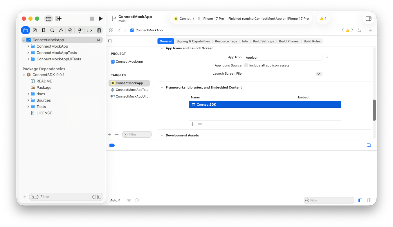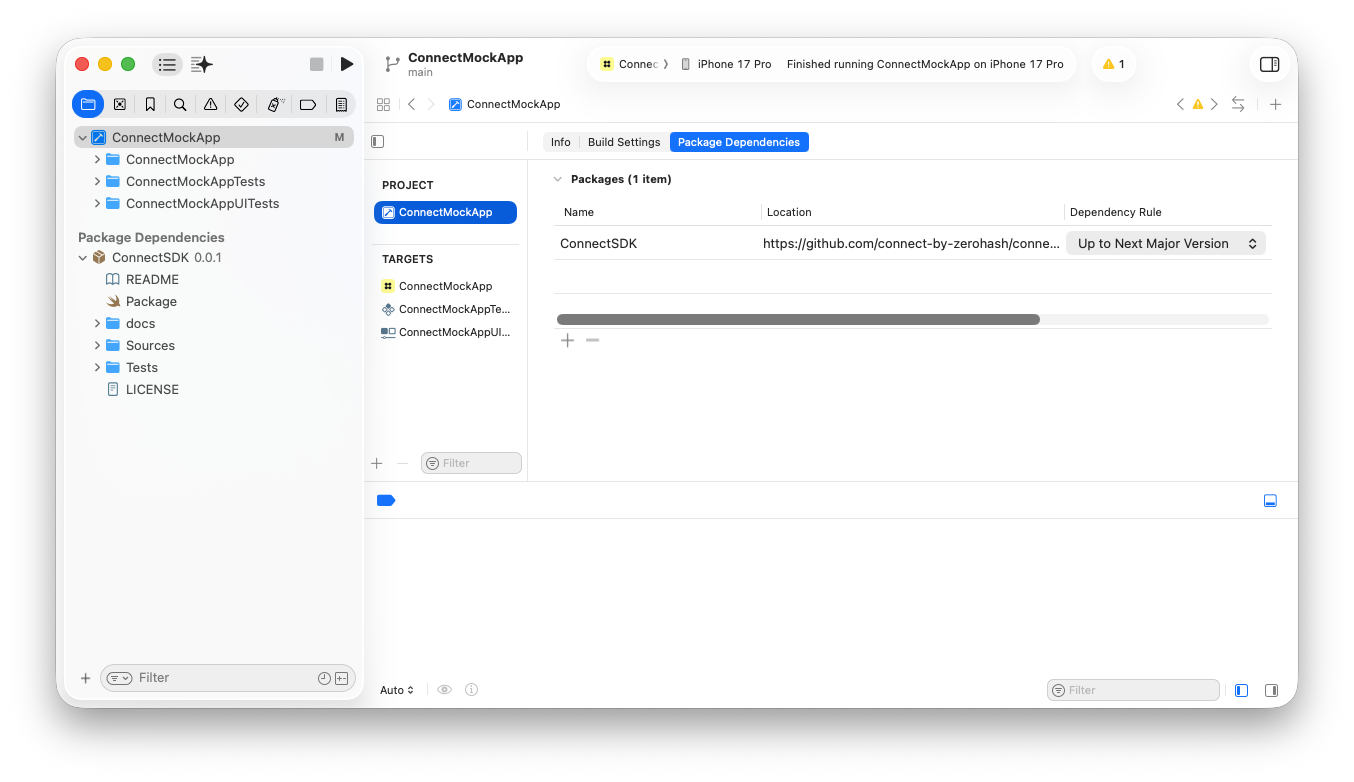 Confirm that the ConnectSDK is now listed on your app's package dependencies: